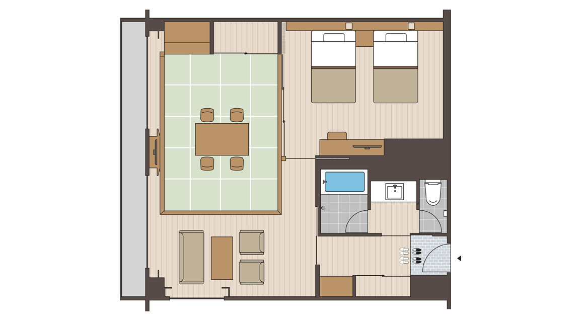 | Amenities | Bath amenities/hand soap/toothpaste set/razor/shower cap/comb/brush/bath towel/towel/yukata/slippers |